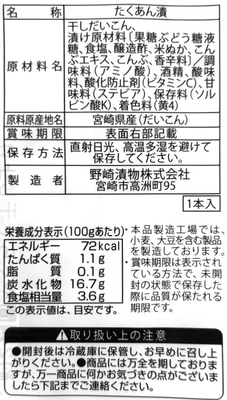 宮崎産干し大根 こんぶ漬 一本 ポストする シェアする 販売価格 450円(税込み) 会員価格 (税込み) 通常価格 (税込み) 在庫 商品コード 211 JANコード 4902145112050 数量 - + カートに入れる 入荷通知メールを希望する カテゴリー たくあん